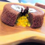 - Verser la préparation aux ¾ dans des ramequins beurrés. Insérer un glaçon de coulis de passion dans la préparation.