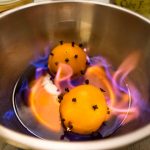 4. Placez vos oranges dans un saladier en acier puis versez le rhum chaud par dessus.
